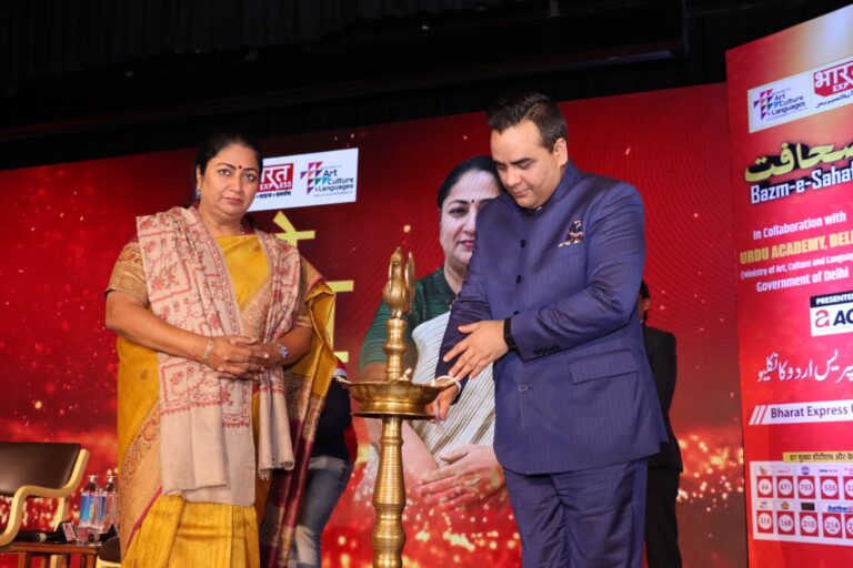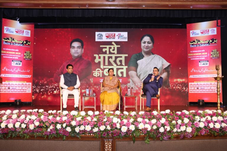 Bharat Express Urdu Conclave: दिल्ली के उर्दू अकादमी में बुधवार 26 नवंबर 2025 को भारत एक्सप्रेस के बैनर तले “बज्म-ए-सहाफत” उर्दू कॉन्क्लेव का आयोजन किया गया. जिसमें दिल्ली की मुख्यमंत्री रेखा गुप्ता, दिल्ली सरकार के मंत्री कपिल मिश्रा और भारत एक्सप्रेस के एडिटर इन चीफ और सीएमडी उपेंद्र राय ने विशेष अतिथि के रूप में शिरकत की. कार्यक्रम की शुरूआत दिल्ली सीएम रेखा गुप्ता और सीएमडी उपेंद्र राय ने दीप प्रज्वलित करके किया.